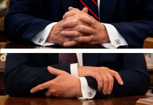 Back in his first term, he preferred to sit with his fingers intertwined or his right over his left, grasping his forearms.
